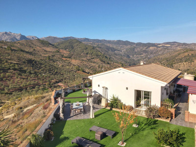 A shaded terrace to the rear of the property welcomes you a necessary cool spot during the summer months. To the right is a separate utility room. Entering into the property you are drawn to the views that are framed by the patio doors and a window to the side aspect framing the view of the village of Yunquera in the distance.