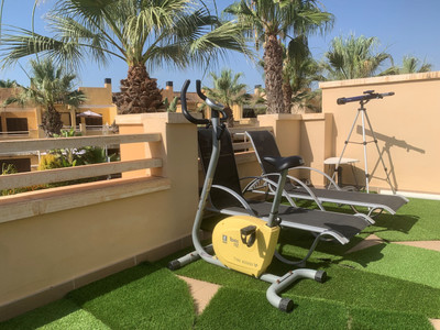 Terraced house with patios, terrace and shared pool A warm welcome to the pleasant area of Lomas de Cabo Roig on the southern Costa Blanca. Here you live a comfortable distance from nice beaches, well-maintained golf courses and a good range of shops and restaurants. The large La Zenia Boulevard shopping center is a short drive away. Torrevieja city can be reached in about 20 minutes by car.