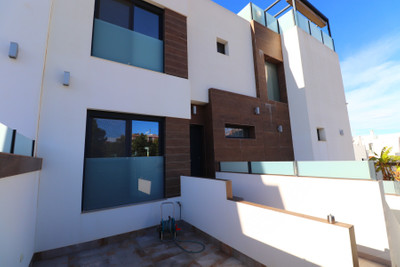 Dit op het westen gelegen, vier slaapkamer, herenhuis in Benijofar, ligt op loopafstand van de vele voorzieningen van deze populaire stad, waaronder een supermarkt, bars, restaurants, sportveld, school en medisch centrum. Op slechts 5 minuten rijden van de golfbaan Quesada en La Marquesa, en ongeveer 12 minuten van de prachtige stranden langs de kust, is dit pand ideaal gelegen. Dit 183m2 grote gezinshuis is slechts 5 jaar geleden gebouwd en beslaat drie verdiepingen. De begane grond beschikt over een open, moderne, hoogwaardige inbouwkeuken, een familiedouche en een ruime woon-/eetkamer met grote glazen schuifdeuren die naar de betegelde tuin en het privézwembad leiden. De onderbouw biedt veelzijdigheid, waaronder een tweepersoonsslaapkamer met toegang tot een terras, een douche en een bijkeuken, toegankelijk via zowel een interne als externe trap. De eerste verdieping bestaat uit twee tweepersoonsslaapkamers, waarbij de hoofdslaapkamer toegang heeft tot een privéterras en een familiedouche. Een externe trap leidt naar een privésolarium met uitzicht op het platteland en de bergen. Het buitenterrein is betegeld voor weinig onderhoud en is toegankelijk voor auto's. Extra functies zijn onder andere inbouwkasten in drie slaapkamers, overal airconditioning en zowel externe als interne toegang tot de onderbouw. Deze woning biedt een perfecte mix van modern design en bruikbaarheid, gelegen in de gewilde Costa Blanca South.