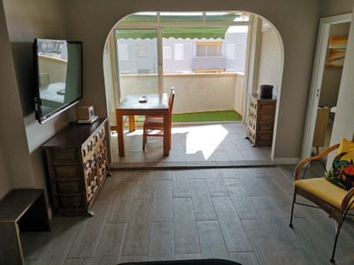 The apartment features three bedrooms, a modern bathroom, and a spacious living area that opens onto a private balcony, ideal for relaxing in the sun. Equipped with air conditioning for year-round comfort, this home offers the perfect blend of convenience and coastal living.