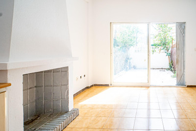 This townhouse is located in a quiet and well-maintained residential complex in the center of Benidorm. The house has a living room with a fireplace and access to a private 20 m² terrace, a kitchen without furniture, guest bathroom, and on the second floor, there is a bathroom and two bedrooms.