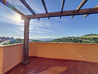 De woonkamer is ruim en baadt in natuurlijk licht dankzij de uitstekende ligging. Het opent naar een groot, op het zuiden gericht terras, een echt pluspunt waar u ten volle kunt genieten van ontspanningsmomenten of buitenmaaltijden terwijl u geniet van het spectaculaire uitzicht op de Middellandse Zee, Gibraltar en de Marokkaanse kust.