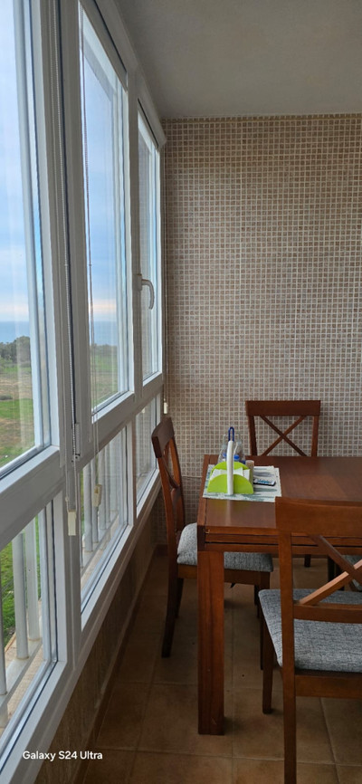 The property features 2 bedrooms and 2 bathrooms, providing ample space for a small family or as a holiday retreat. The 65 m² living area includes a bright living-dining room with access to a balcony, partly glazed, ideal for enjoying the Mediterranean sunshine while taking in the sea views.