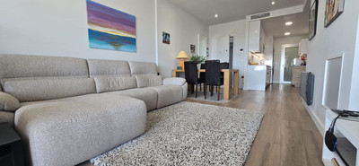 Waw factor property : Penthouse with 2 bedrooms and 2 bathrooms , newly build onthe border between Playa Flamenca and Los Dolses. This southfacing apartment overlooks the comunity pool & garden and has a comfortable layout : very good size and bright livingroom with exit to a sunny terrace, open plan kitchen with a laundry room, master bedroom with onsuite and exit to the terrace, second bedroom and gust bathroom. Upstairs a fantastic solarium of 62 sqm with shower. The property has also an alocated parking place. Inside of the urbanization you can enjoy the pool and gardens, gym and a little park for the kids.